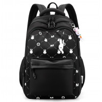 Školský detský batoh v modernom čiernom prevedení s motívom zajačika. Pohodlný, funkčný batoh v kvalitnom prevedení s kľúčenkou v tvare zajačika. Školský batoh sa skladá z troch rôzne veľkých uzatvárateľných vreciek, ktoré umožnia lepšiu organizáciu priestoru. V zadnej časti batohu je skryté vrecko na zips a popruh na nasadenie batohu na cestovný k..